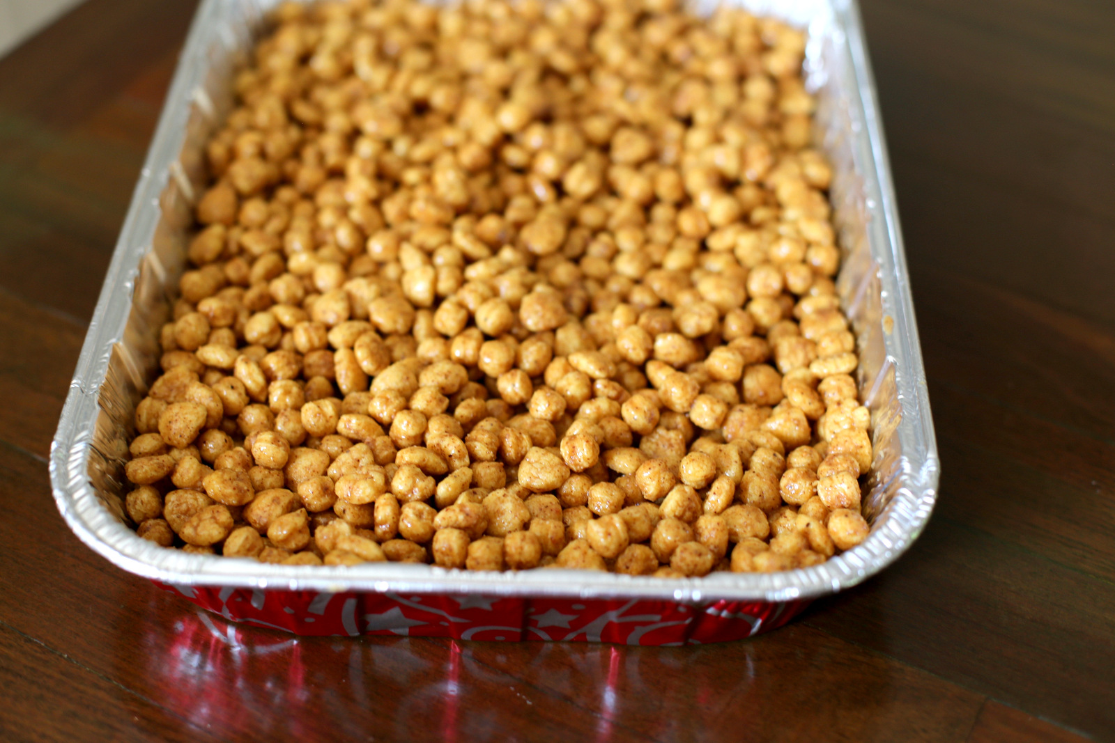 Smooth peanut butter, cereal, cheerios, candy corn, sugar, syrup.